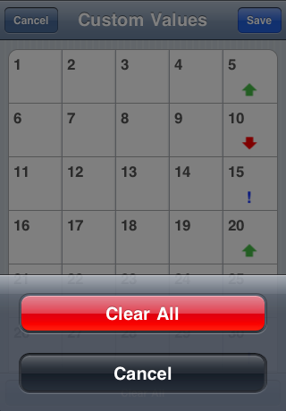 Tap the "Clear All" button at the bottom of the screen to remove all of the markers at once. (You can also remove individual markers by tapping on them. Increase markers can be removed by tapping three times, decrease markers can be removed by tapping twice, general alert markers can be removed by tapping once.)
