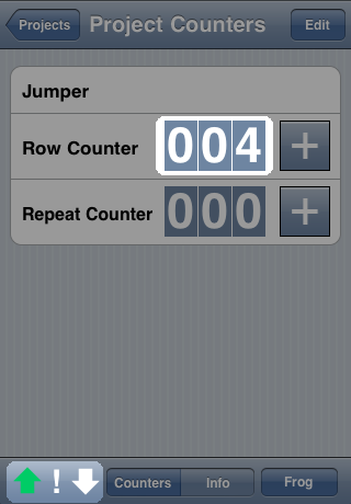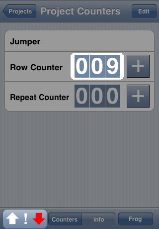 When working with a pattern that contains special rows (e.g. increase, decrease, cable etc.), you're always going to need to know what you need to do at the beginning of the row. As an example, if a pattern requires increases on rows 5 and 10; you need to be notified of this as soon as you've finished rows 4 and 9. If you set increase markers in Knit Counter on rows 5 and 10, an increase marker will be displayed when the row counter reaches 4, and 9 respectively.