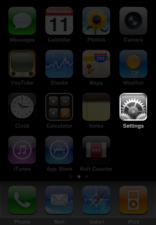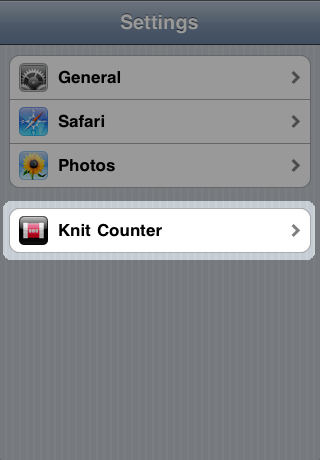 Knit Counter's settings are found in the built-in Settings application, accessible from your iPhone/iPod's home screen.